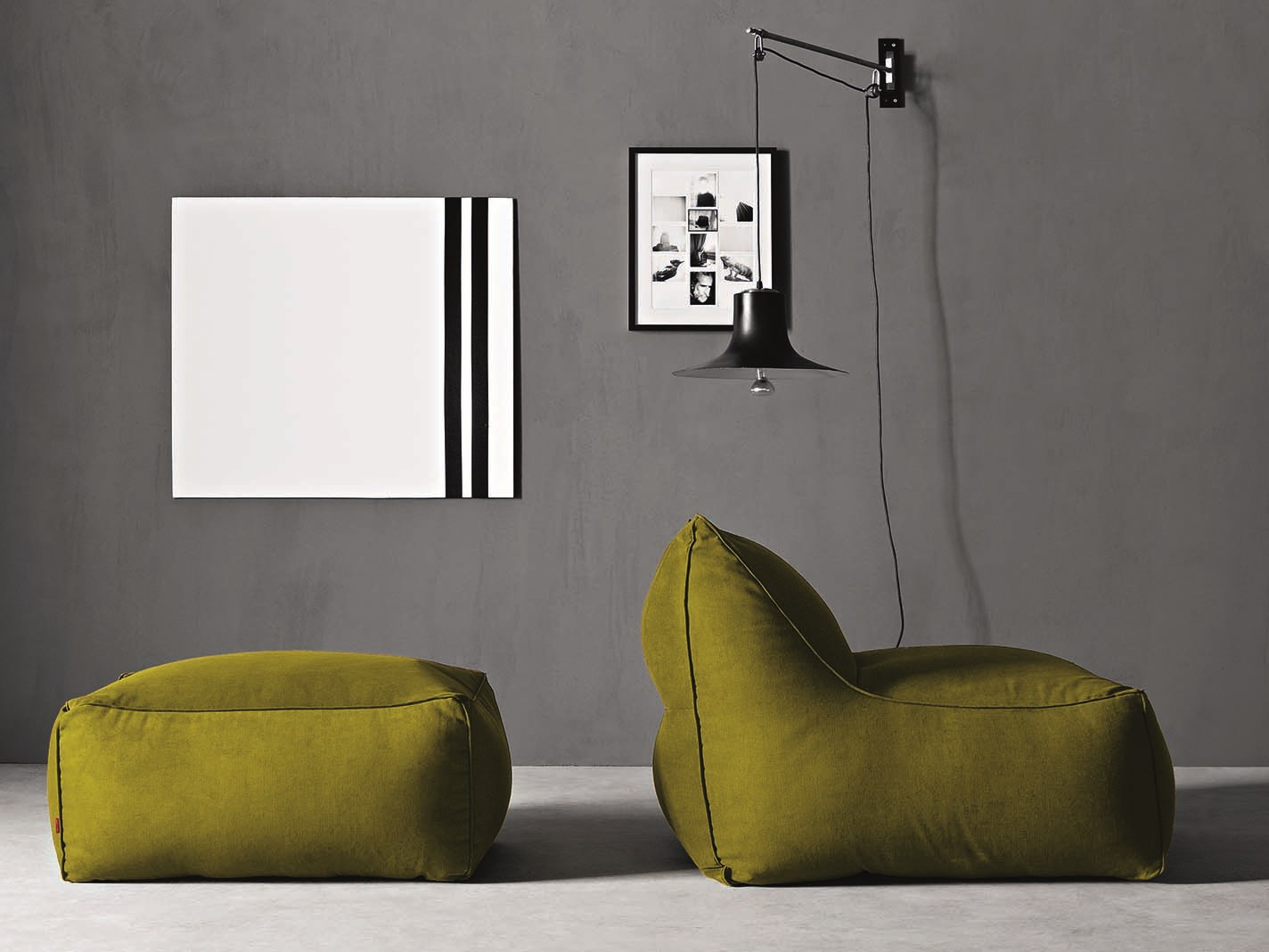 Πουφ - καναπέ με πολυστερίνη, χωρίς κανένα σταθερό και άκαμπτο σημείο. Δυναμική και νεανικό, δημιουργεί απρόσμενες, άτυπες λύσεις διαβίωσης. Εύκολα συνδυασμένες μονάδες μευαξύ τους. Μοντέρνο και παιχνιδιάρικο με πολλές χρωματικές αντιθέσεις
